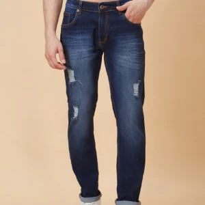 men blue cotton distressed jeans