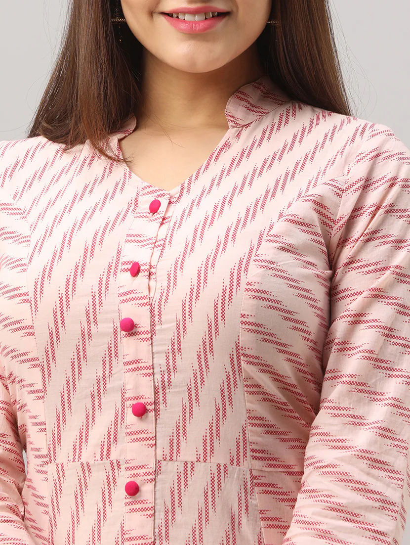 Elegant Ikat Print: Features a traditional Ikat pattern that adds a touch of ethnic charm.