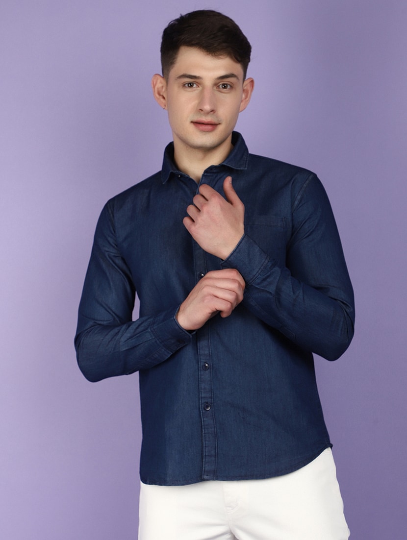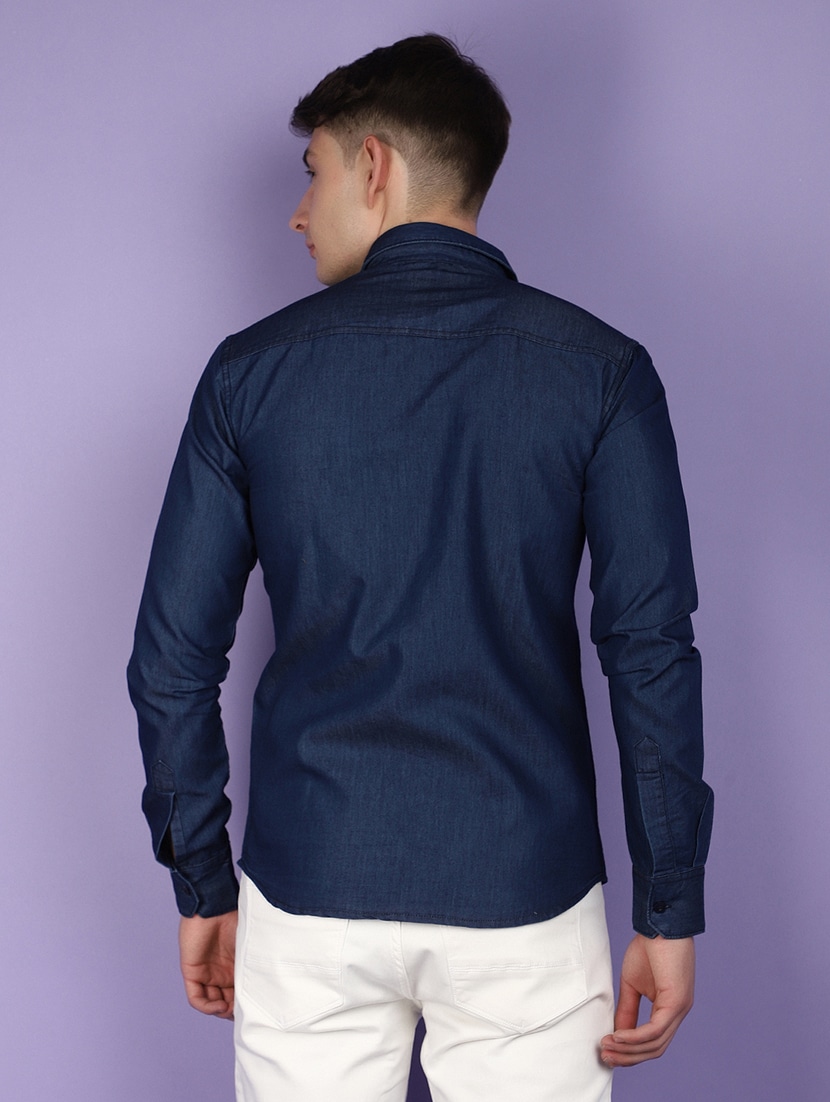 navy blue denim casual shirt