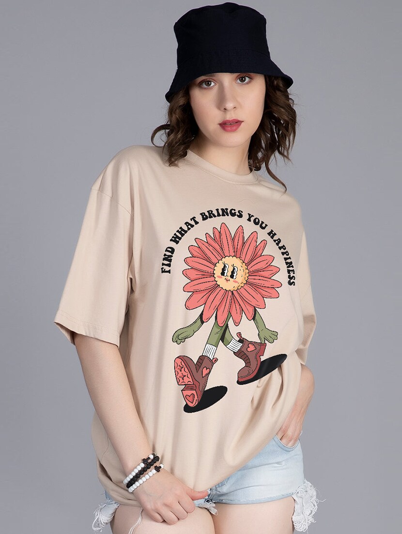 women round neck front printed t-shirt